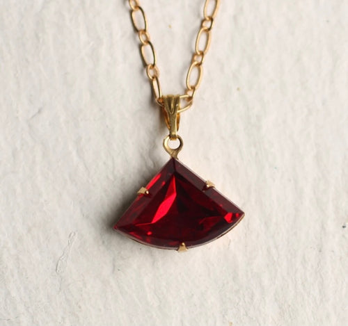 Mwclis Art Deco Rhuddem Coch / Ruby Red Art Deco Necklace