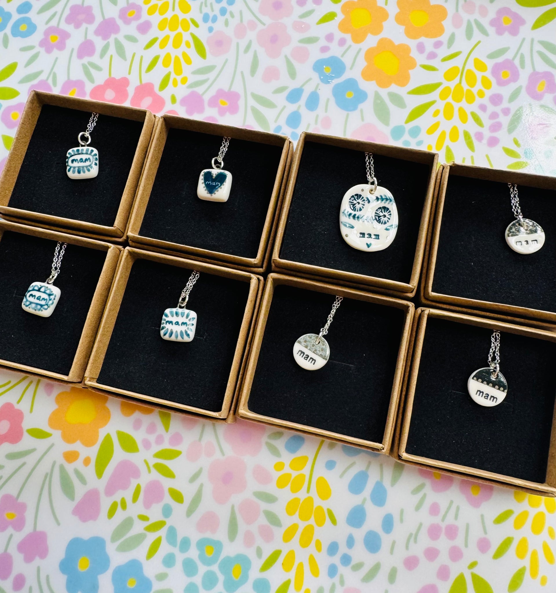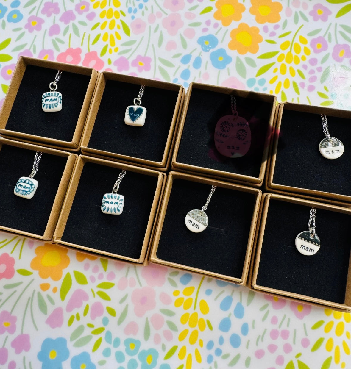 Mwclis unigryw ‘Mam’ seramig ac arian gan Tlysau / Unique seramic and silver ‘Mam’ necklace by Tlysau