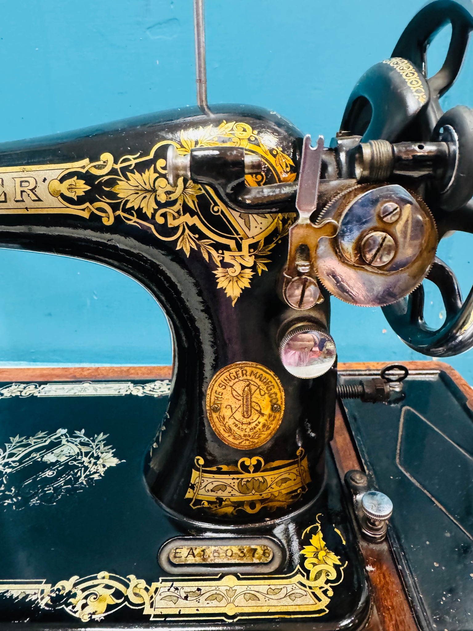 Peiriant gwnio Singer Hynafol o ddechrau’r 20fed Ganrif / Antique Singer sewing machine from the beginning of the 20th Century