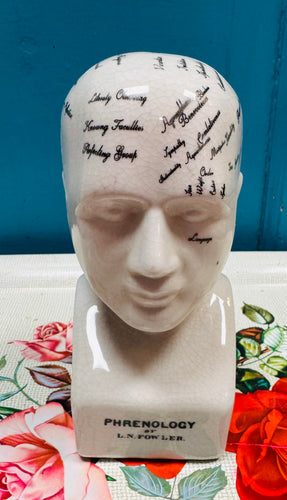 Pen Seramig Antiqued Phrenology bach / Small Antiqued Ceramic Phrenology head