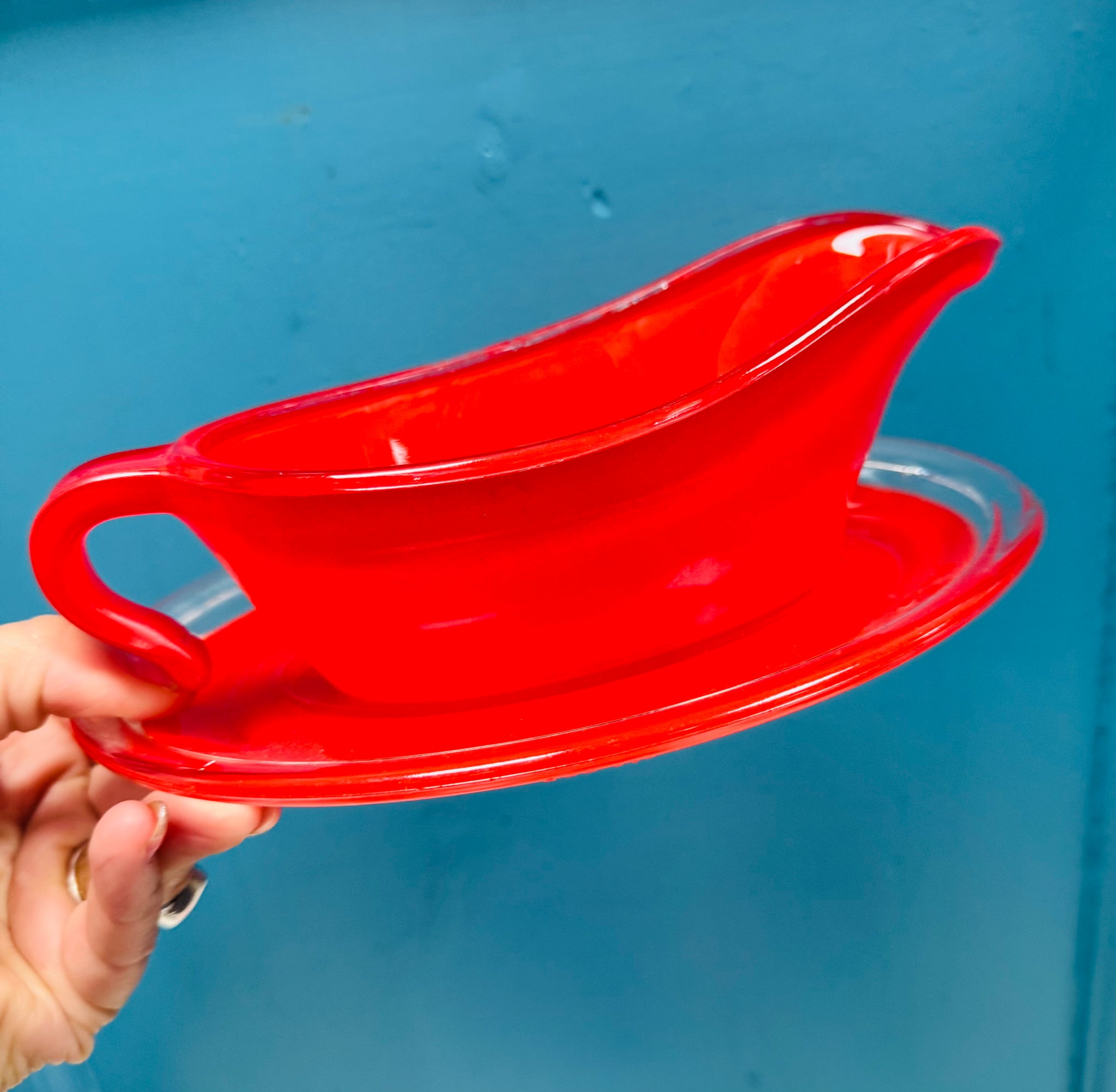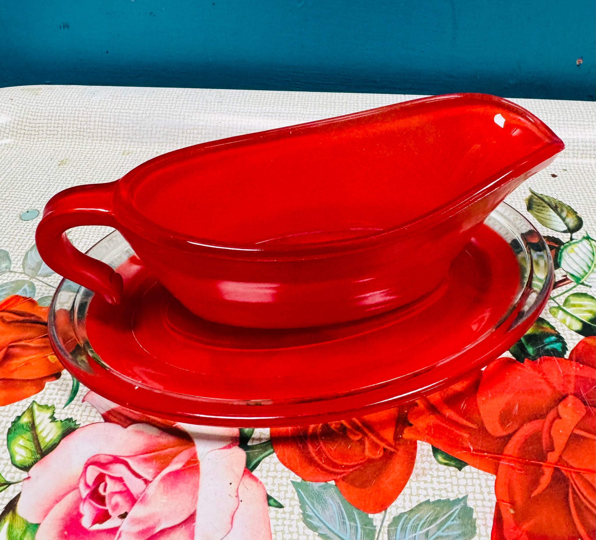 Jwg gravy a soser Pyrex Phoenix Retro coch / Retro red Phoenix Pyrex Gravy boat and saucer