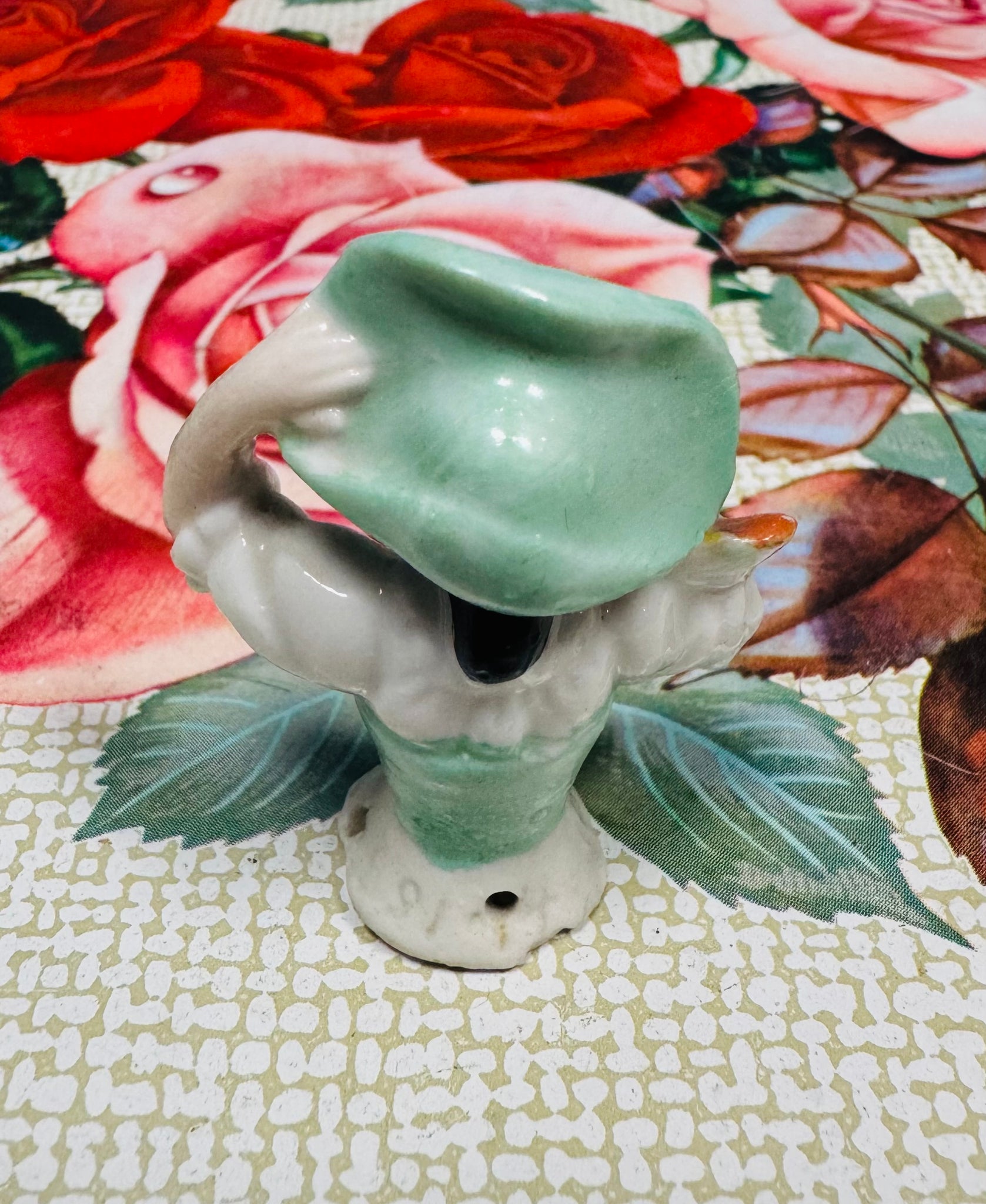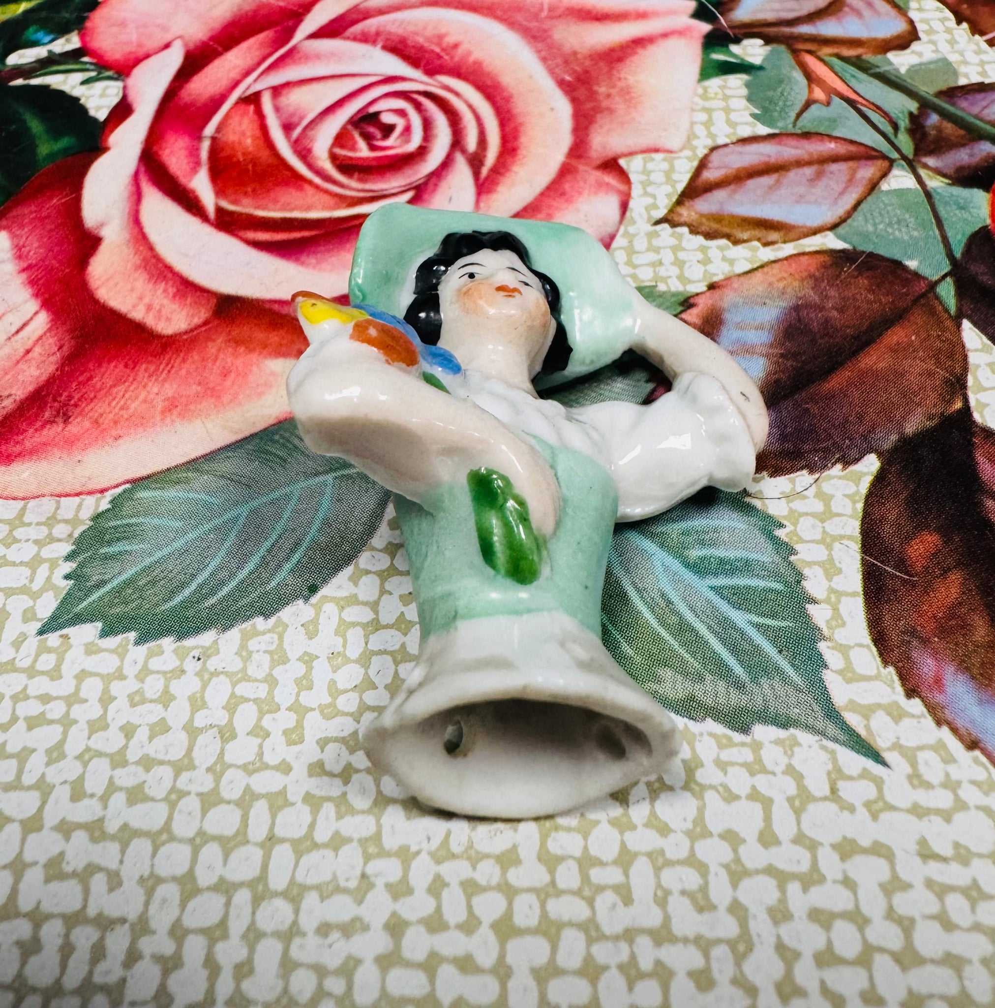 Hanner Ladi seramig pin cushion Vintage / Vintage ceramic Antique half Lady pin cushion