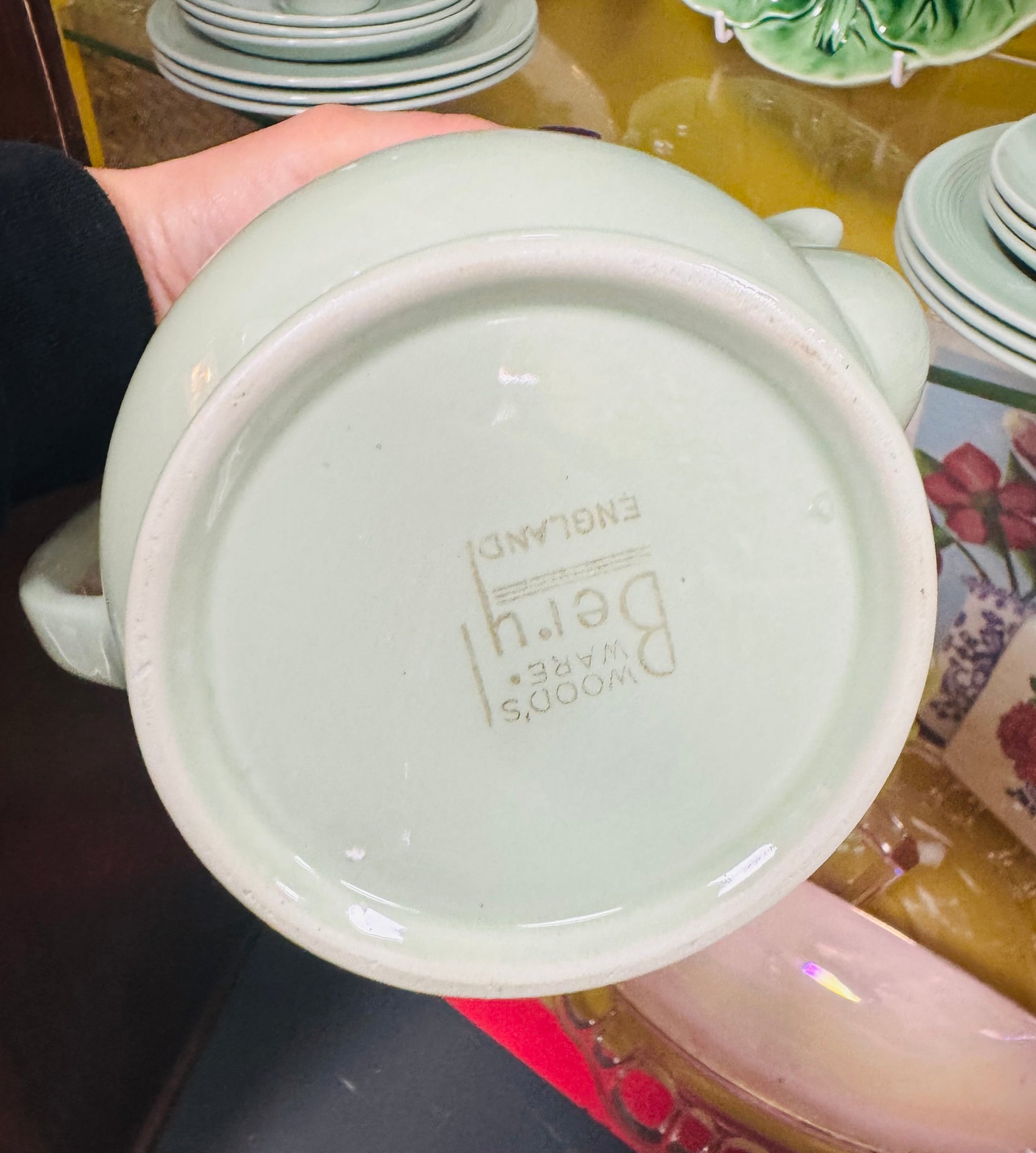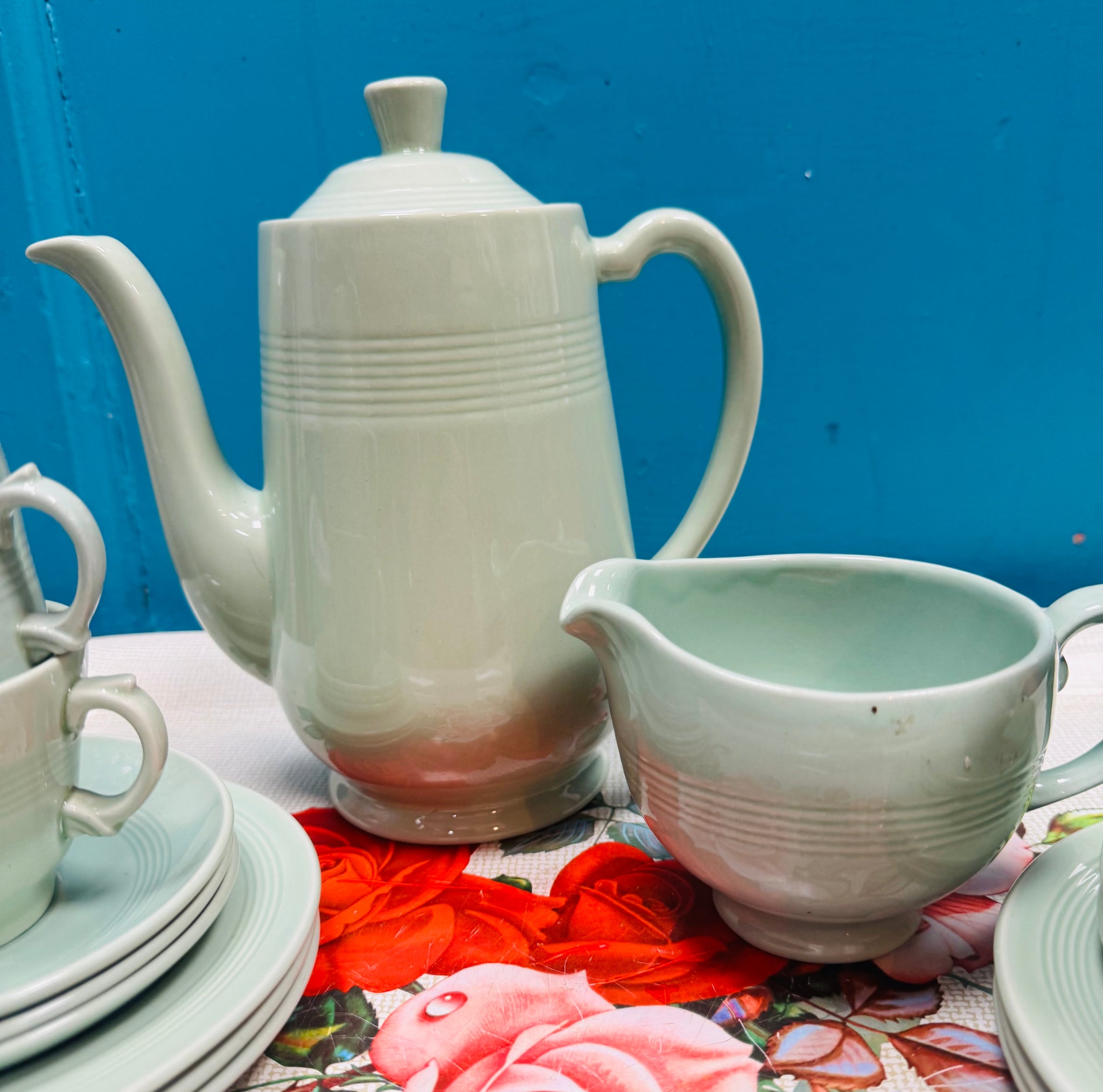 Pot Coffi Vintage Beryl Ware Woods lliw mint o’r 40au / Vintage Beryl Ware Woods mint coloured Coffee Pot from the 40s