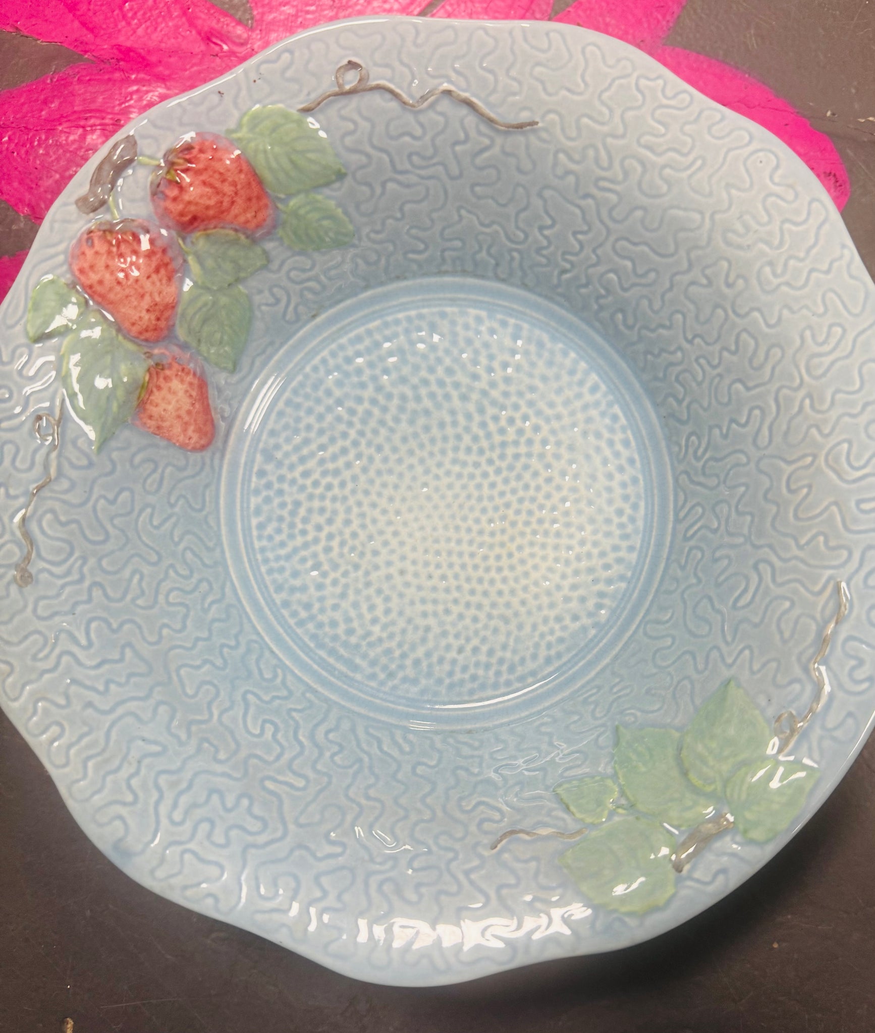 Powlen weini las â mefud Melba Ware Vintage / Vintage strawberry blue Melba Ware serving bowl