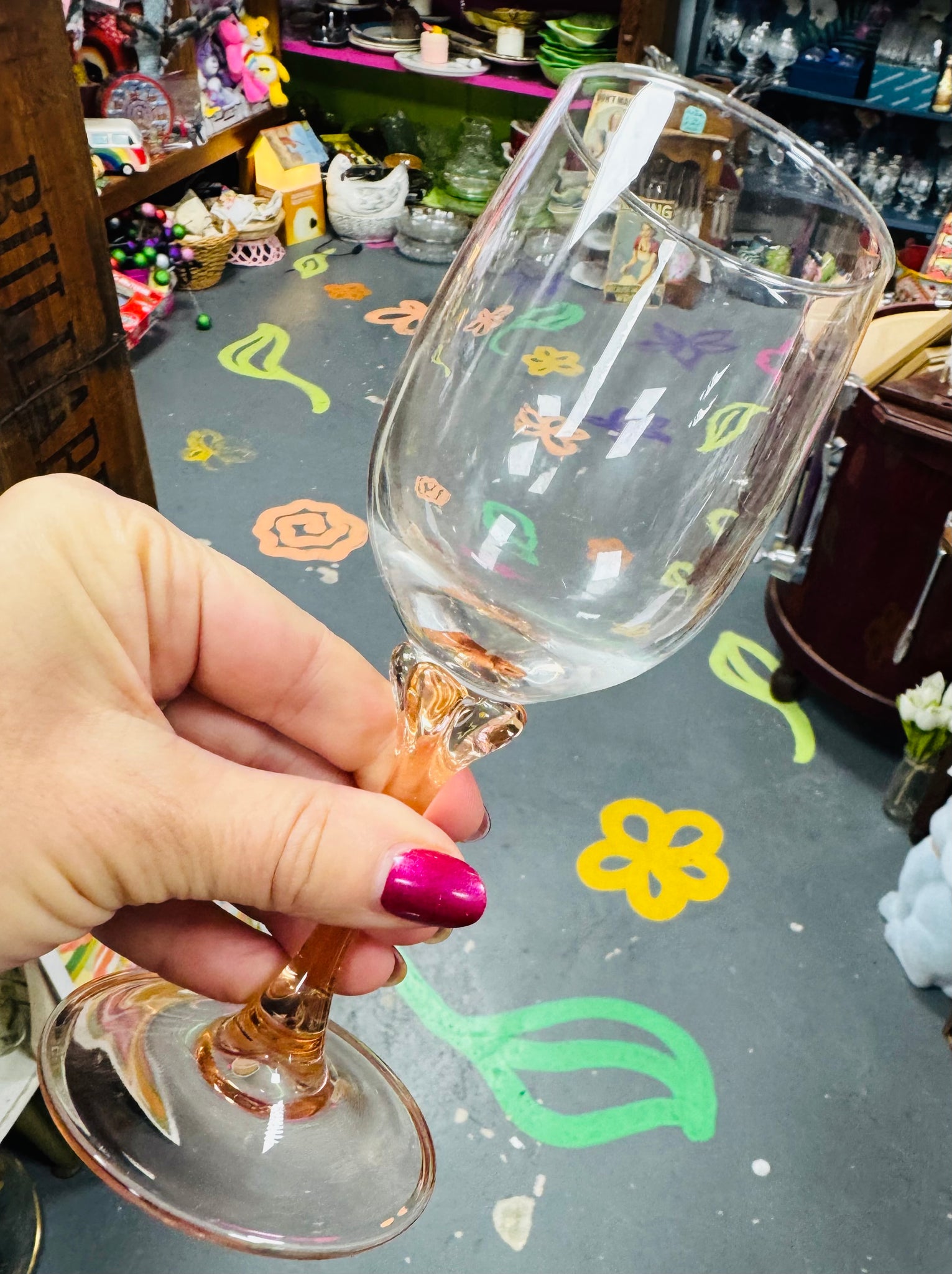Set o 4 o wydrau gwin Vintage gyda choesau rhuddliw / Set of 4 wine glasses with rose coloured stem