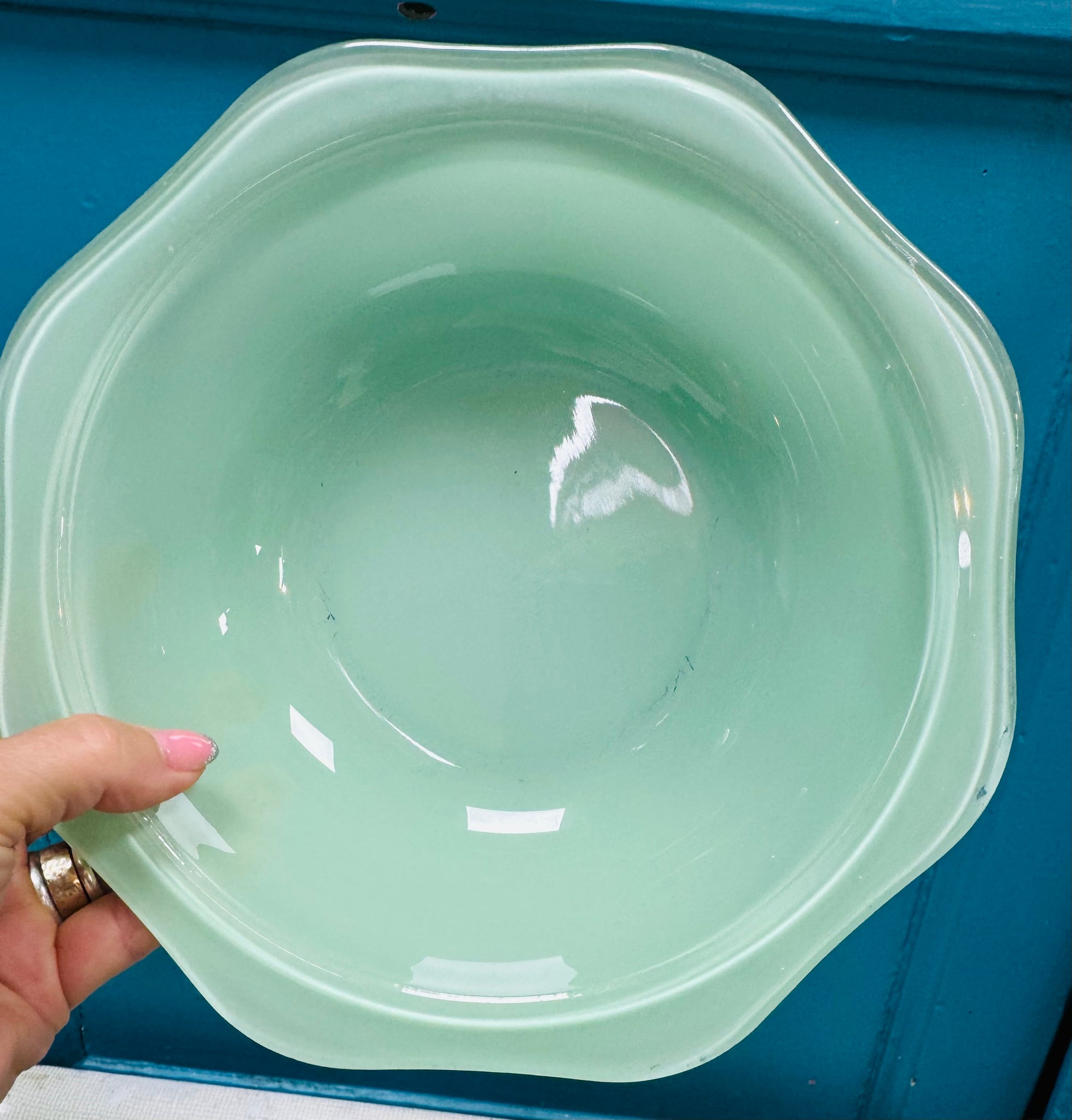 Set o 5 powlen Pyrex fach ac un powlen fawr lliw mint / Set of 5 small and one large Pyrex mint green bowls