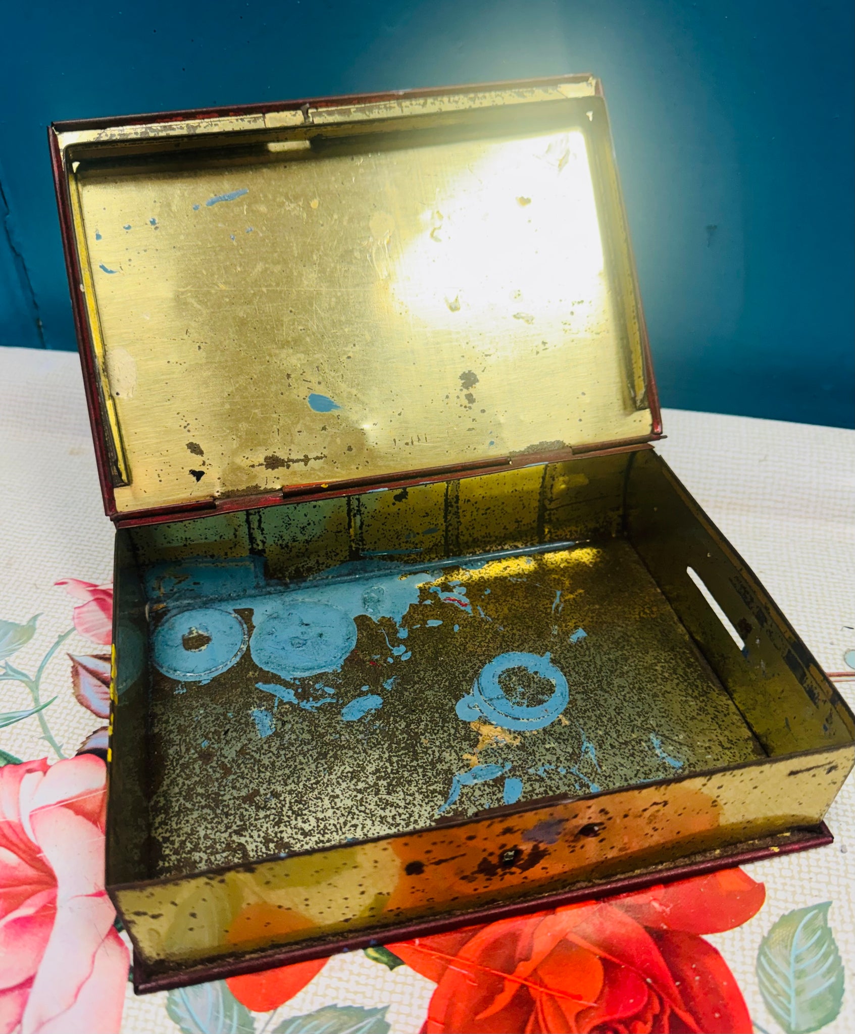 Tin dal pres Vintage efo llun o fachgen bach a’i gi / Vintage money box tin with boy and his dog