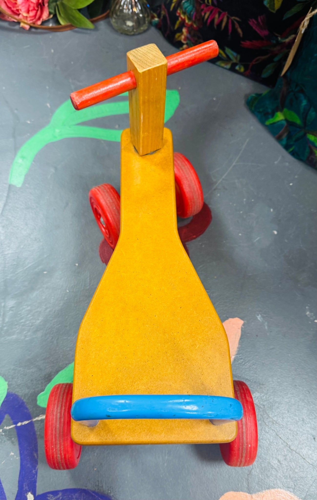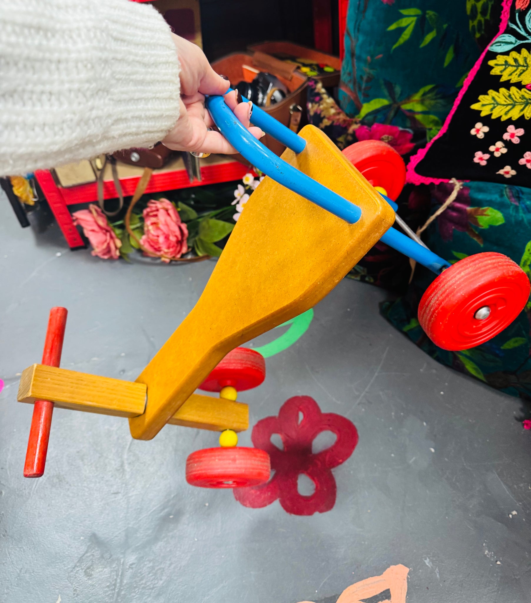 Treic / Beic pren glas a coch Vintage o’r 80au / Vintage 1980s Wooden blue and red Trike / Bike