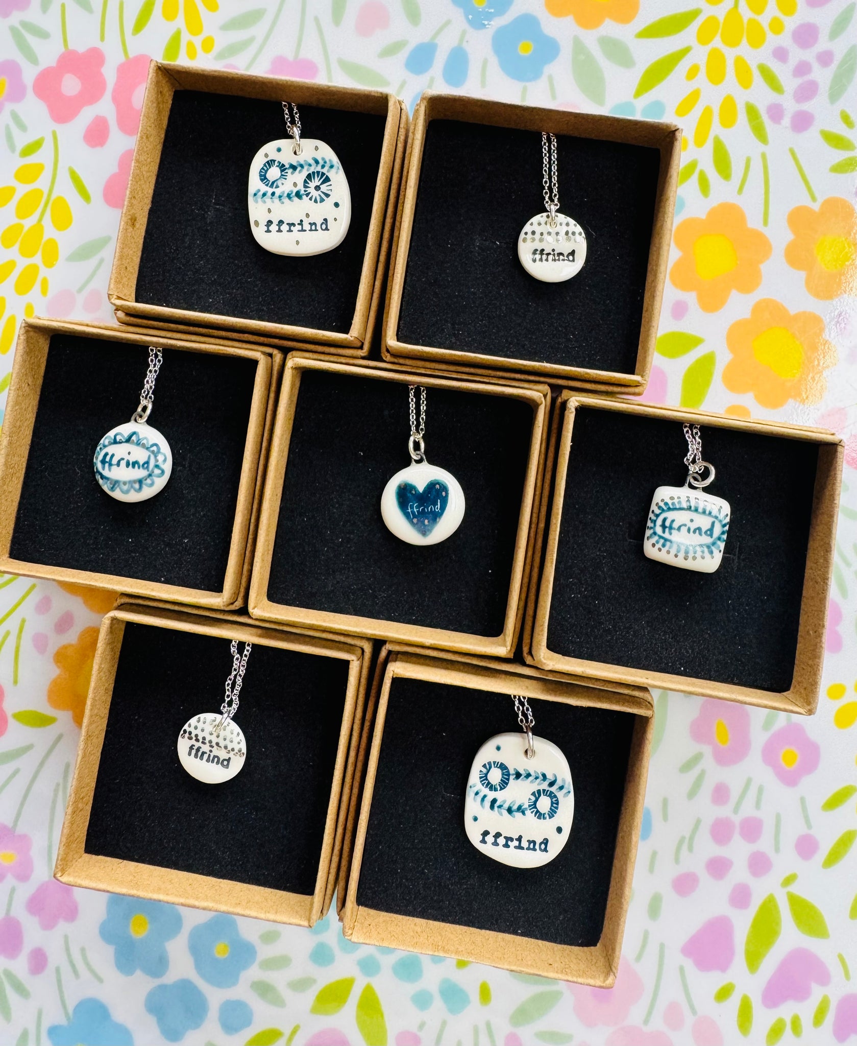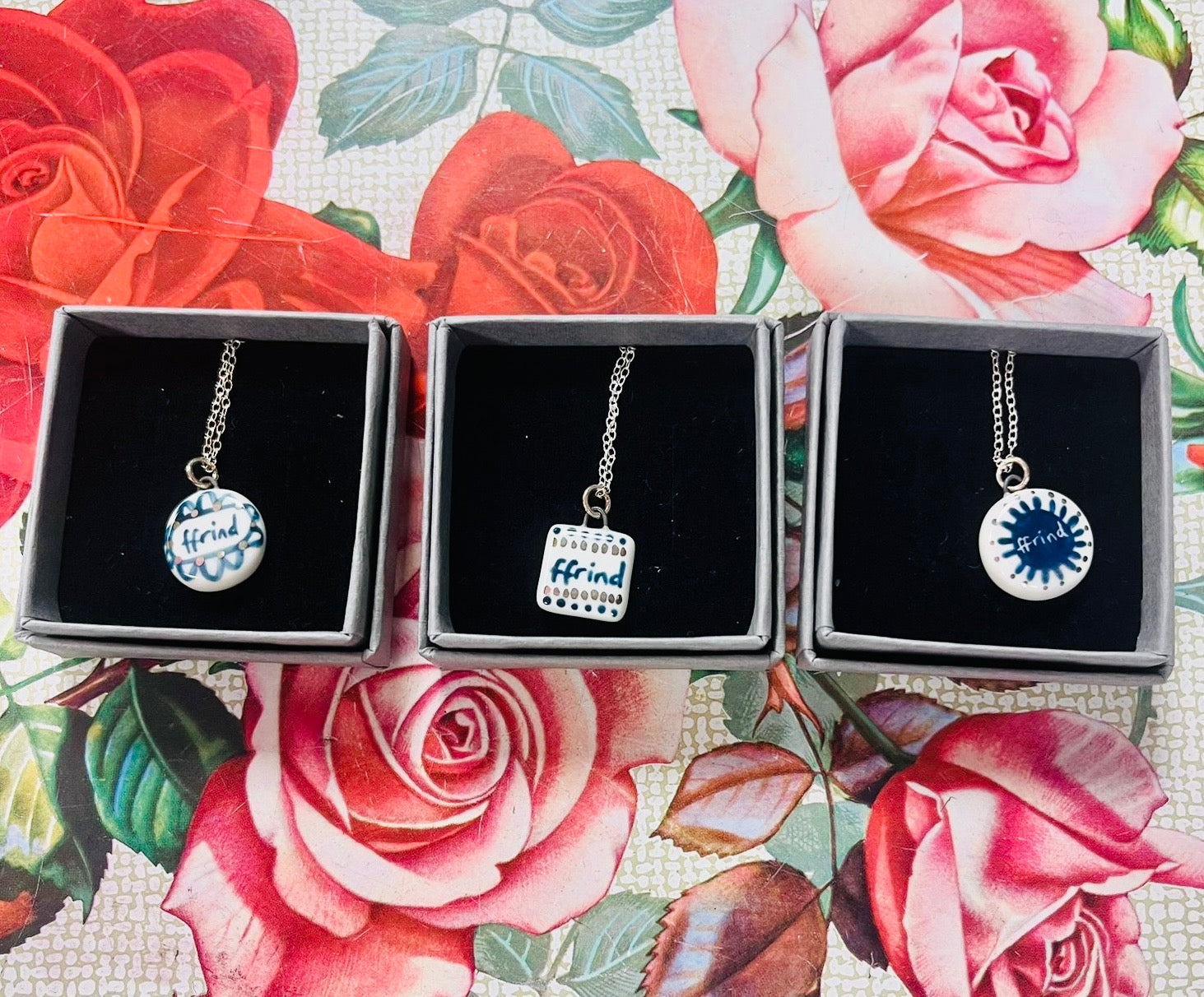 Mwclis unigryw ‘Ffrind’ seramig ac arian gan Tlysau / Unique seramic and silver ‘Ffrind’ necklace by Tlysau