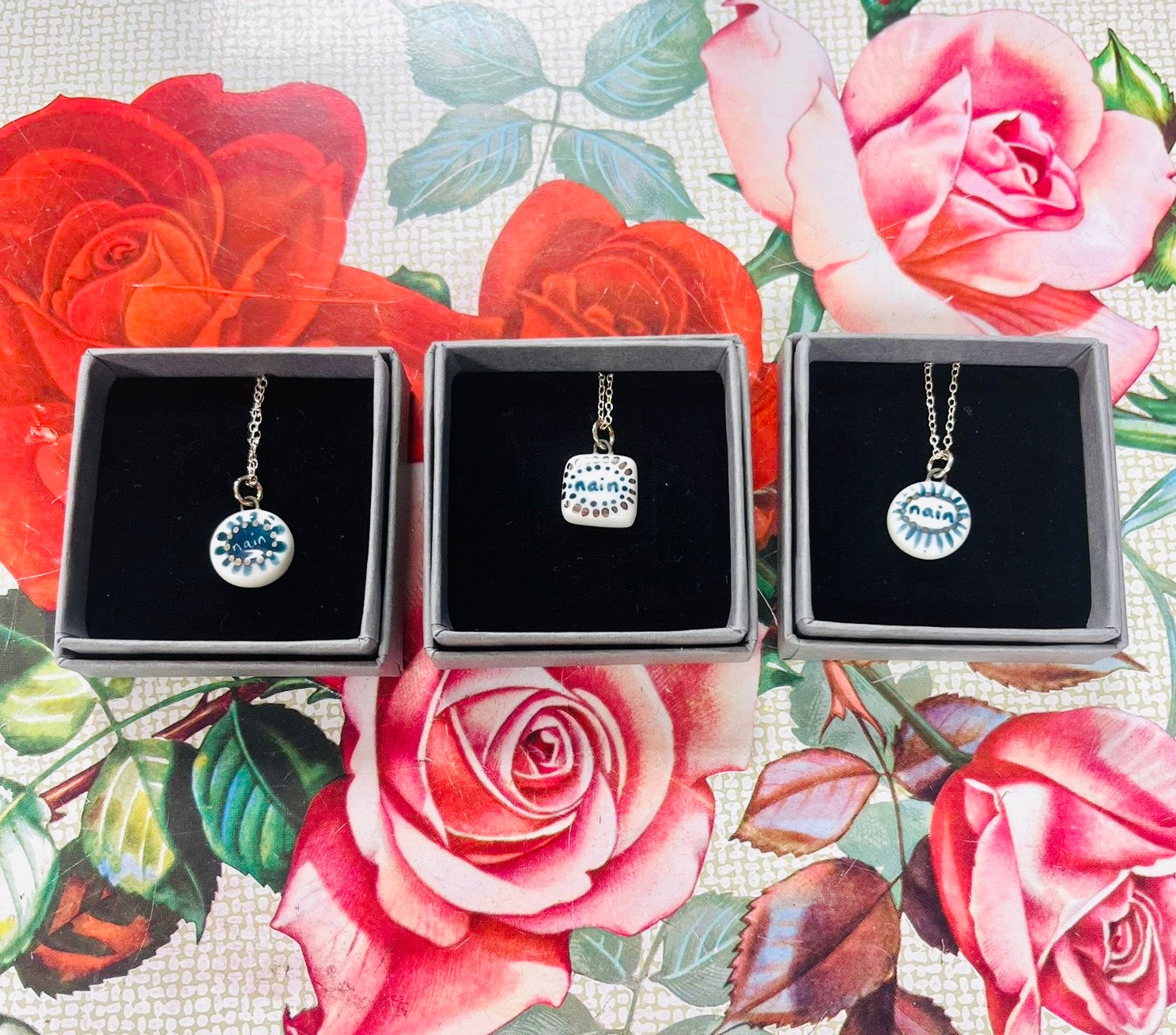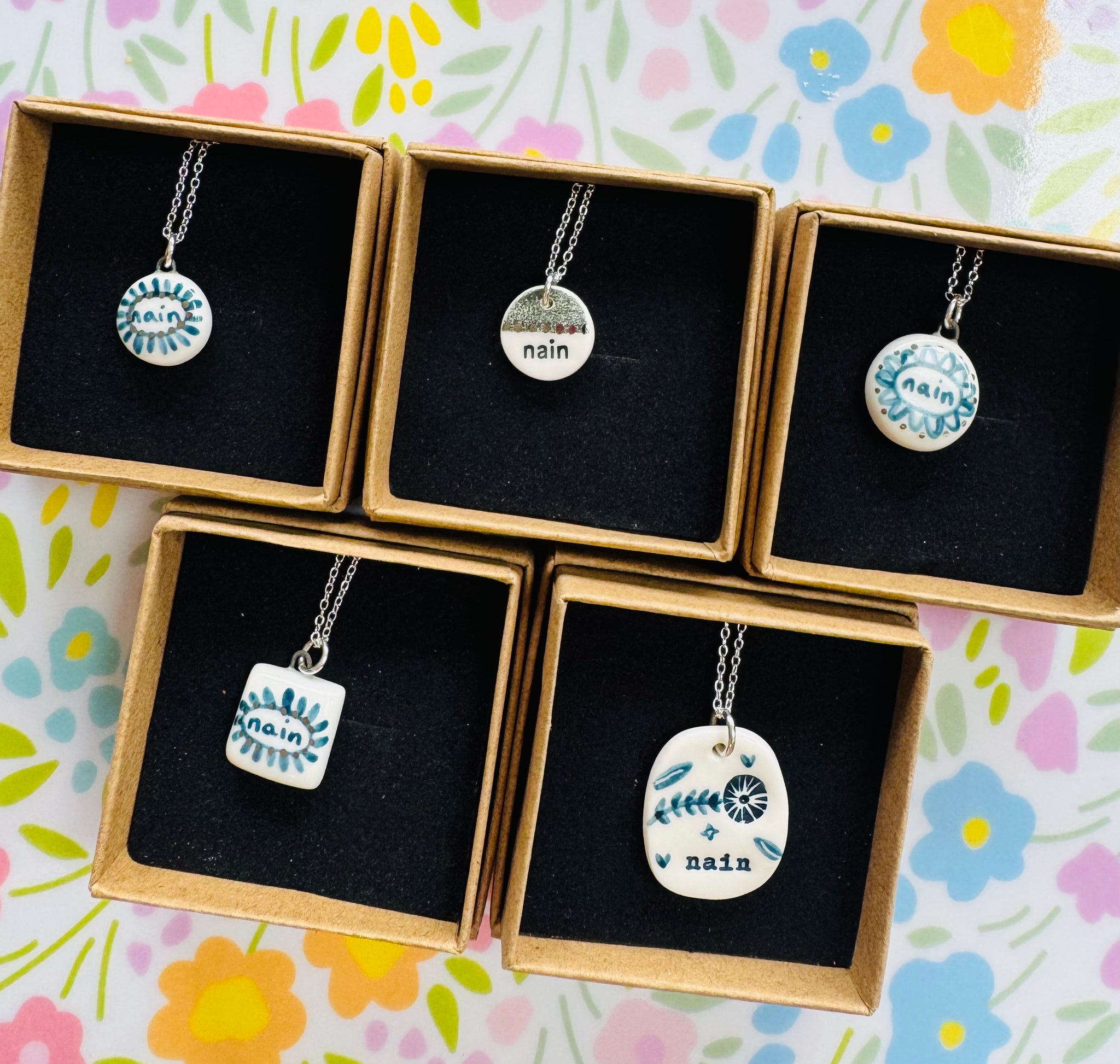 Mwclis unigryw ‘Nain’ seramig ac arian gan Tlysau / Unique seramic and silver ‘Nain’ necklace by Tlysau