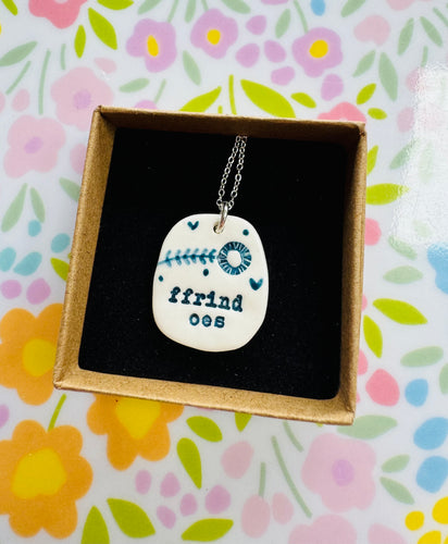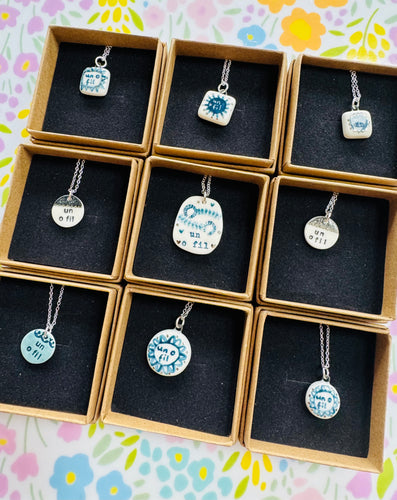 Mwclis unigryw ‘Ffrind Oes’ seramig ac arian gan Tlysau / Unique seramic and silver ‘Ffrind Oes’ necklace by Tlysau