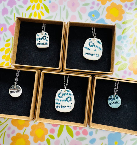 Mwclis unigryw ‘Ti’n Ffab’ seramig ac arian gan Tlysau / Unique seramic and silver ‘Ti’n Ffab’ necklace by Tlysau