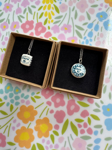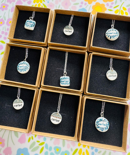 Mwclis unigryw ‘Cary Ti’ seramig ac arian gan Tlysau / Unique seramic and silver ‘Caru Ti’ necklace by Tlysau