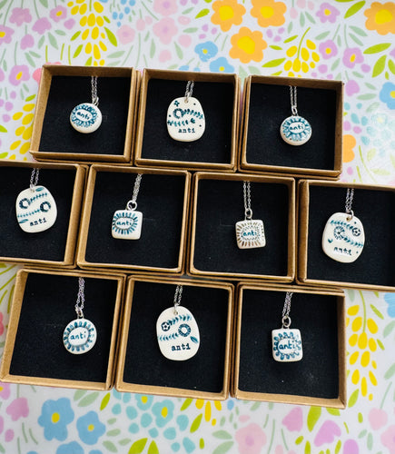 Mwclis unigryw ‘Anti’ seramig ac arian gan Tlysau / Unique seramic and silver ‘Anti’ necklace by Tlysau