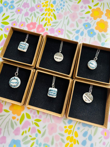 Mwclis unigryw ‘Mam orau’ seramig ac arian gan Tlysau / Unique seramic and silver ‘Mam orau’ necklace by Tlysau